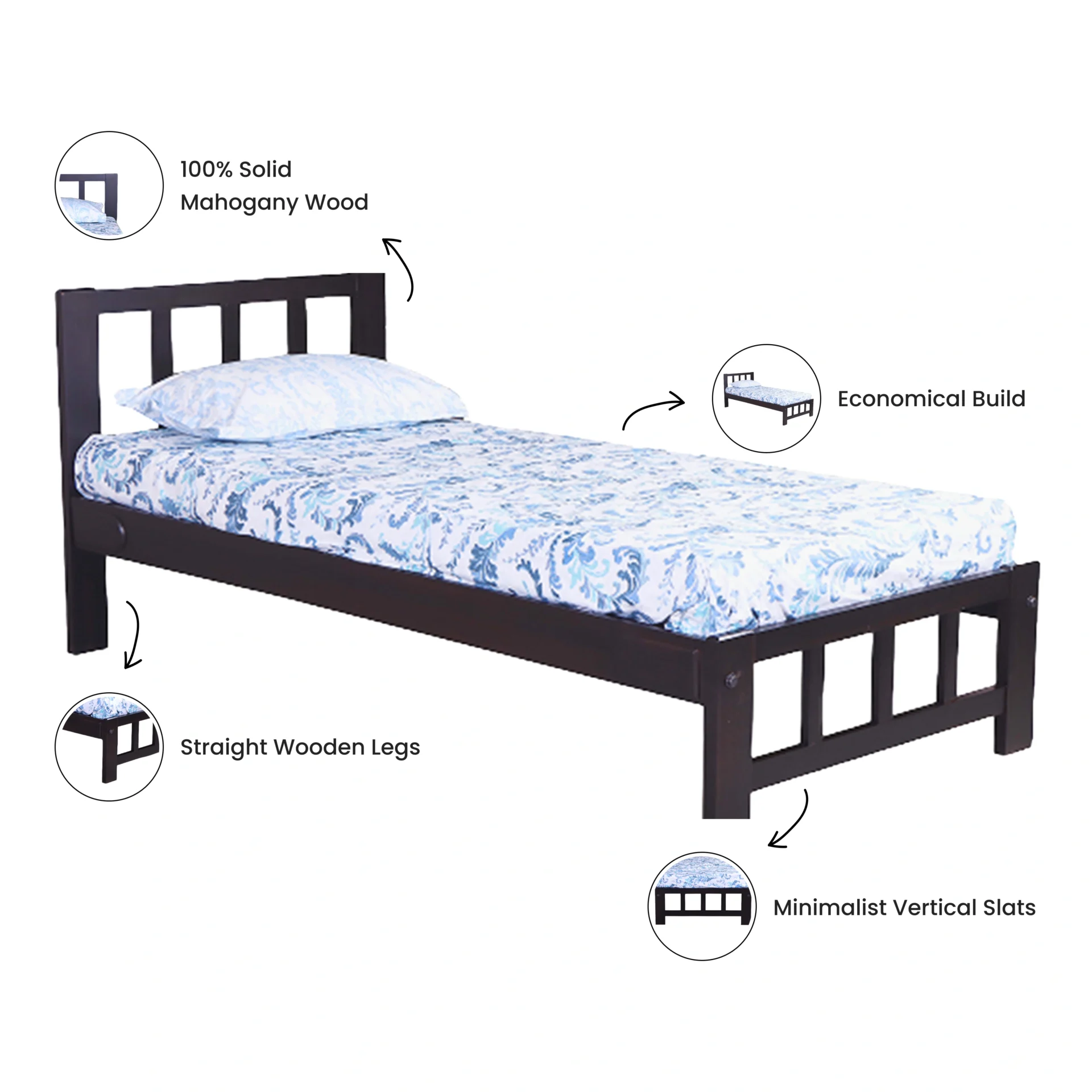With the Solo Single Cot, simplicity takes center stage—bringing you a durable, refined sleep solution with the timeless appeal of mahogany wood.