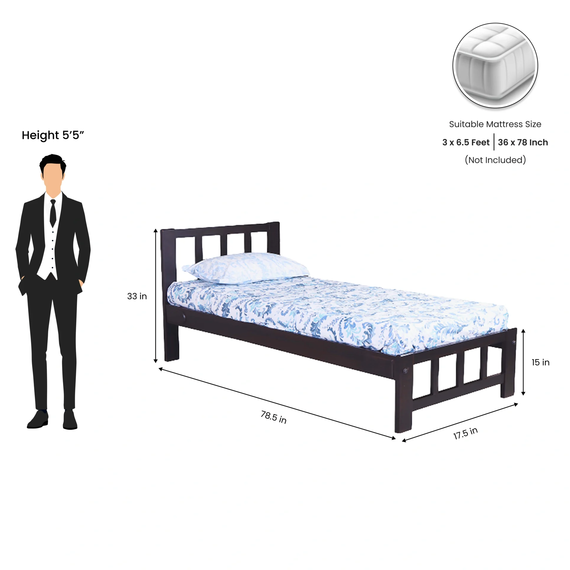 | Mattress Size | 75 x 36 Inches. |