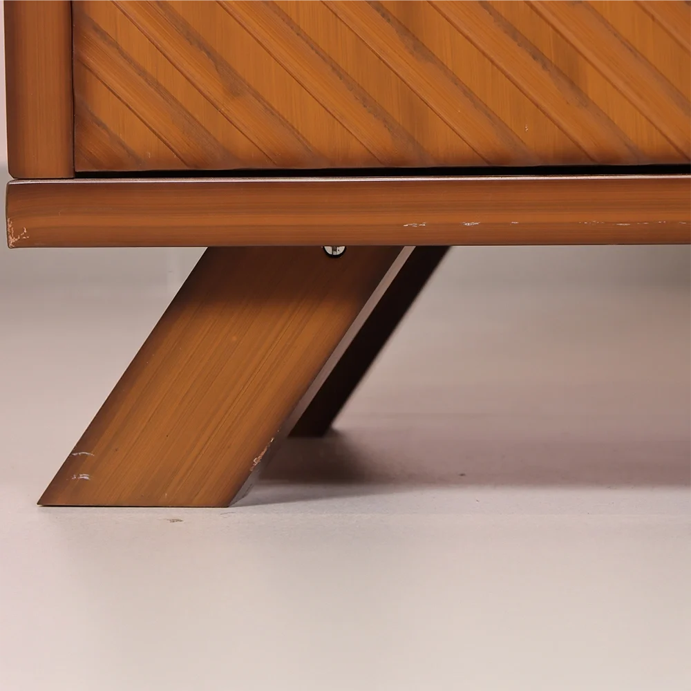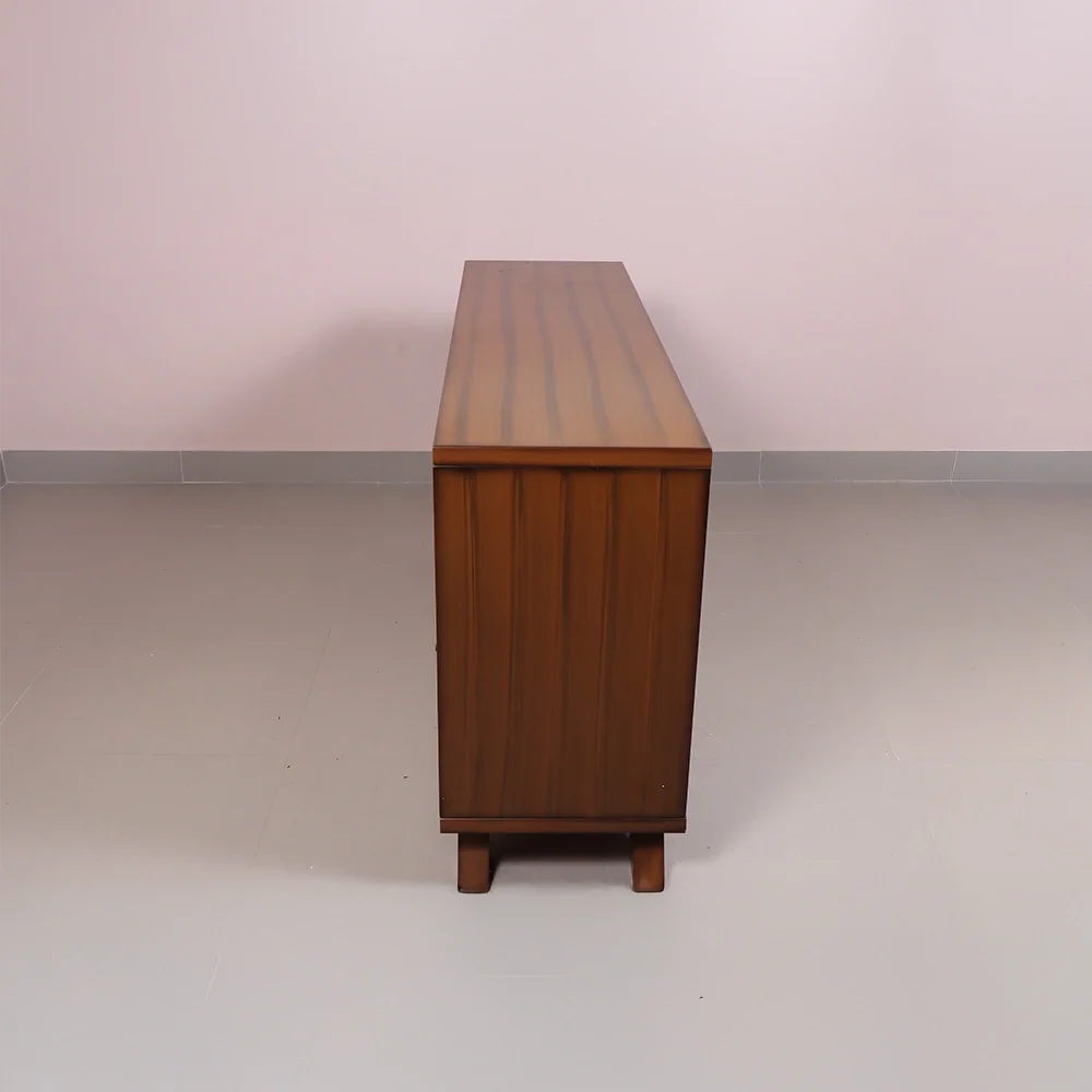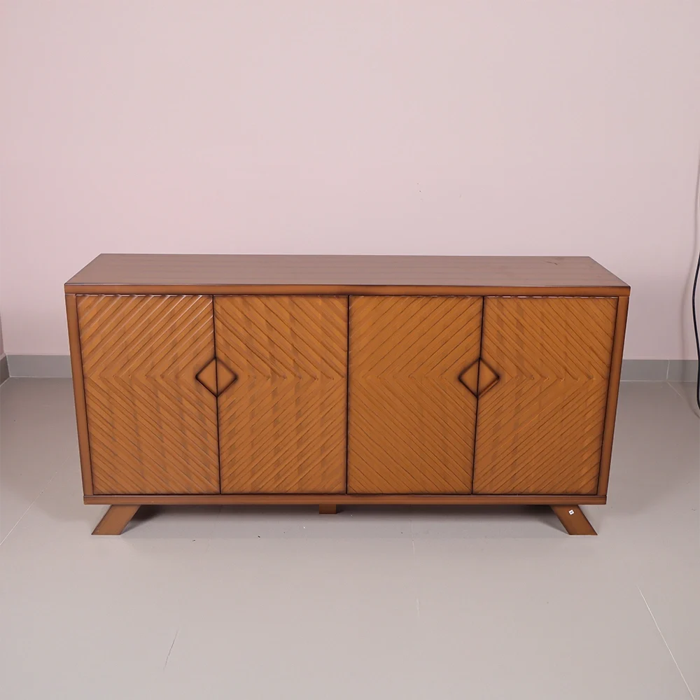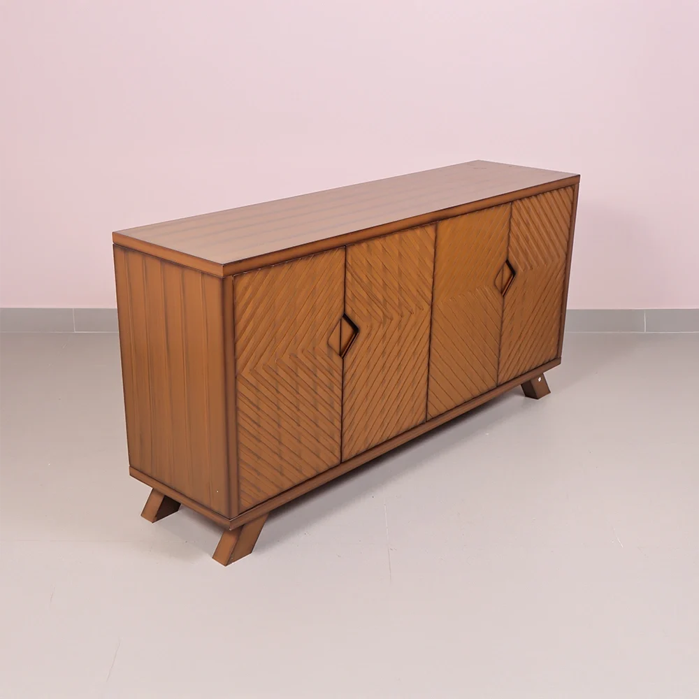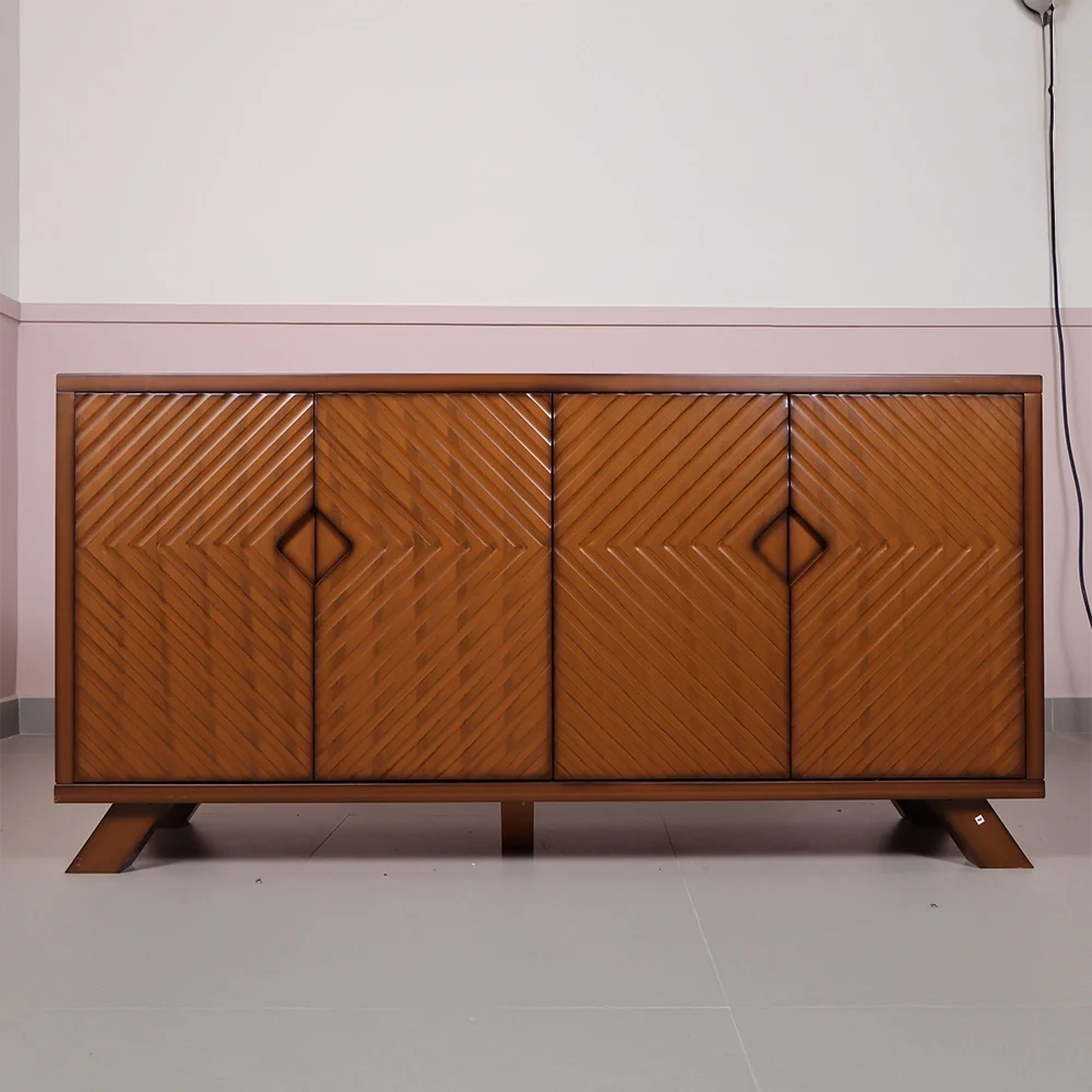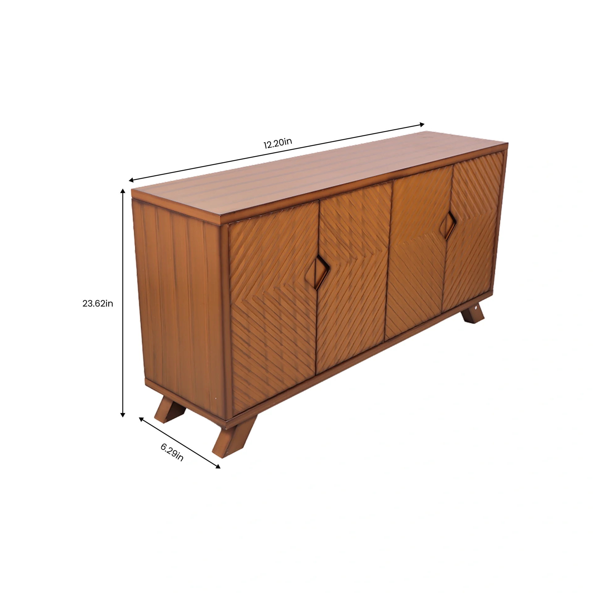 Elevate your living space with the refined charm of the Stellar Teak Cabinet. Expertly crafted from premium quality teak wood, this cabinet features a striking chevron pattern on its doors that adds a sophisticated touch to any interior. The warm teak finish highlights the natural grain of the wood, bringing both texture and character to your room.