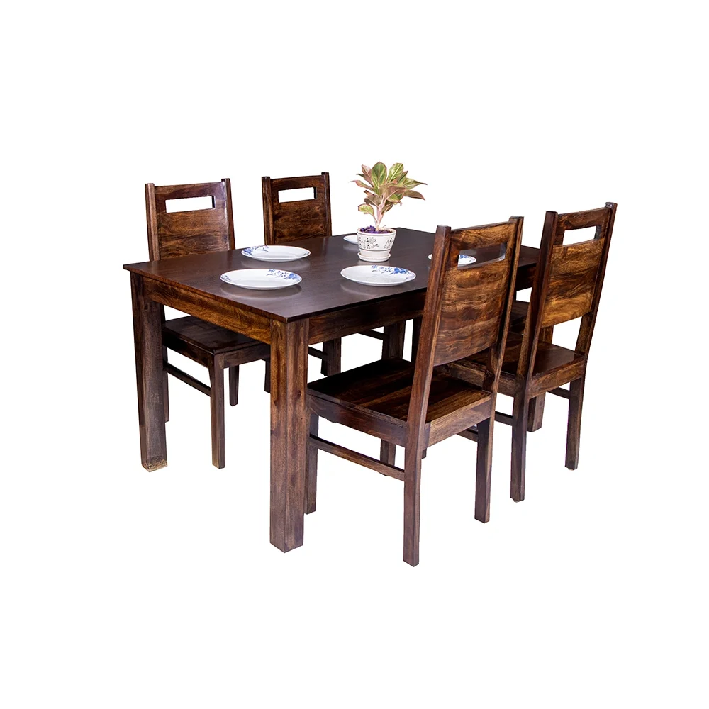 Crafted for elegance and everyday comfort, the Stirling Table with Amaze Chairs is a 4-seater dining set that perfectly balances refined craftsmanship with functional design. Made from high-quality solid Sheesham wood, this set embodies timeless appeal with its rich grain patterns, sturdy construction, and deep walnut finish.
