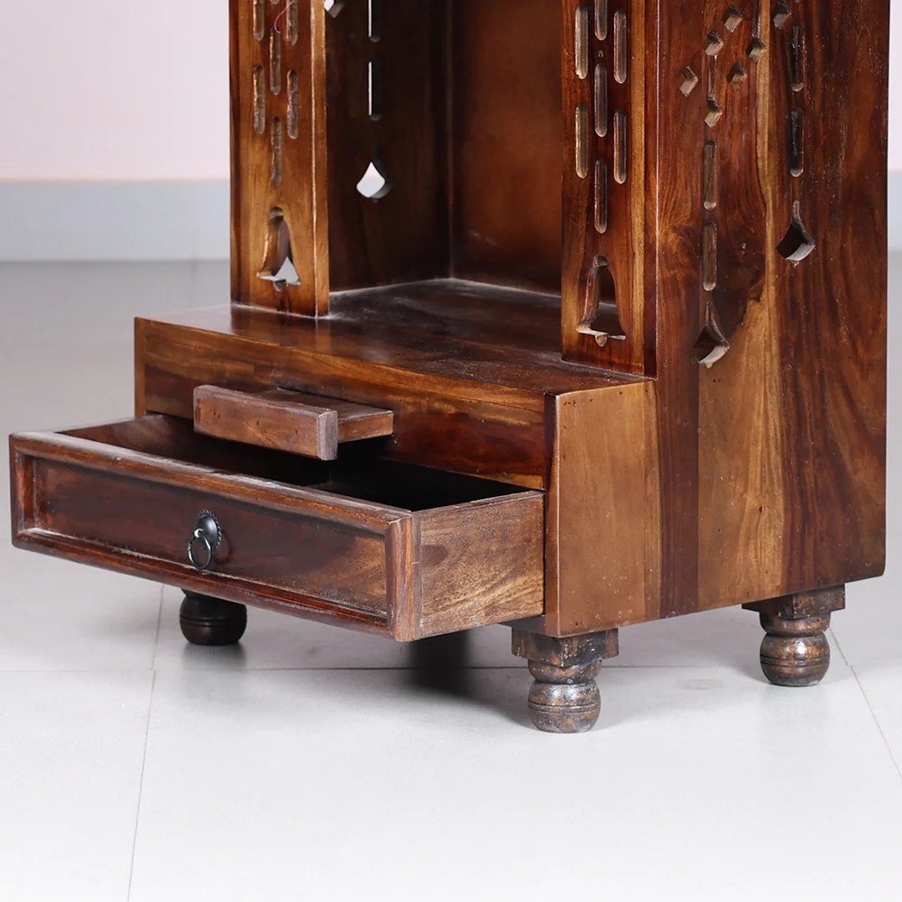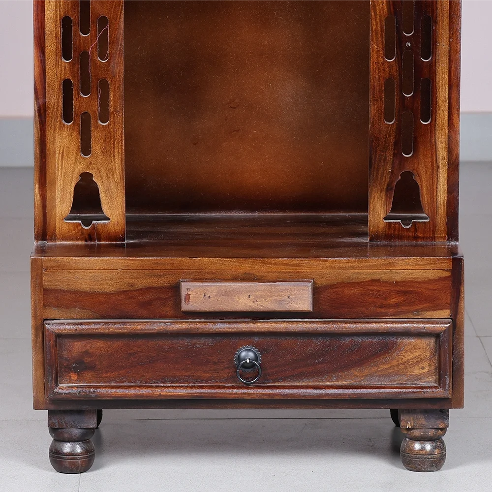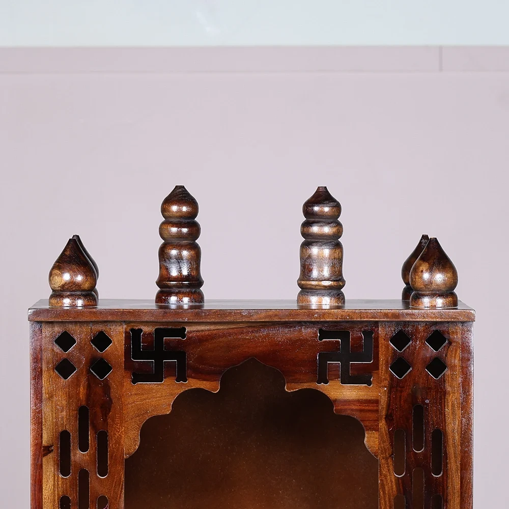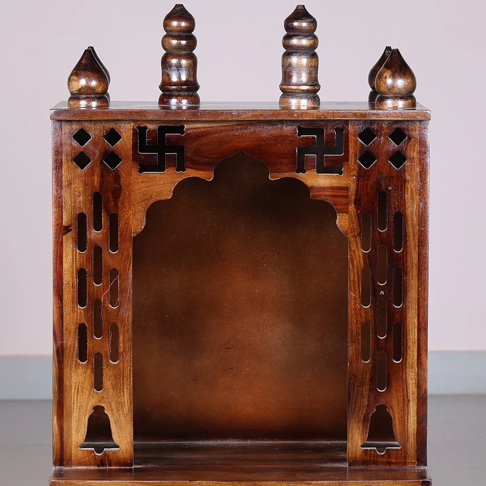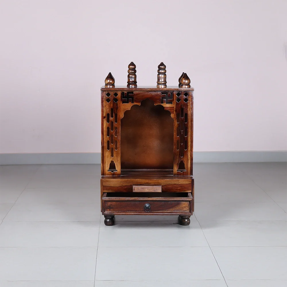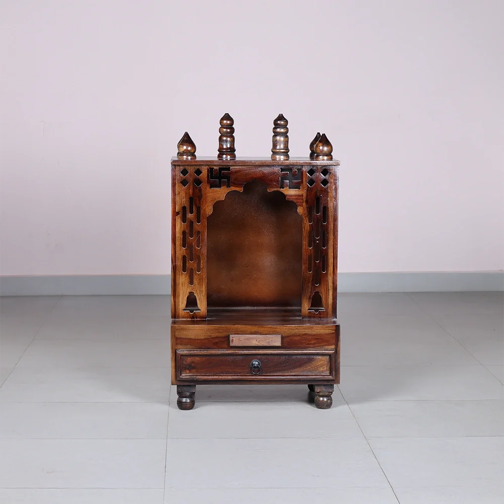 Bring home divine grace and timeless craftsmanship with the Swastik 1 Drawer Temple an elegant wooden mandir designed for compact spaces without compromising on traditional charm. Handcrafted from premium Sheesham wood, it embodies spiritual serenity and natural elegance, making it perfect for daily pooja rituals and devotional display.