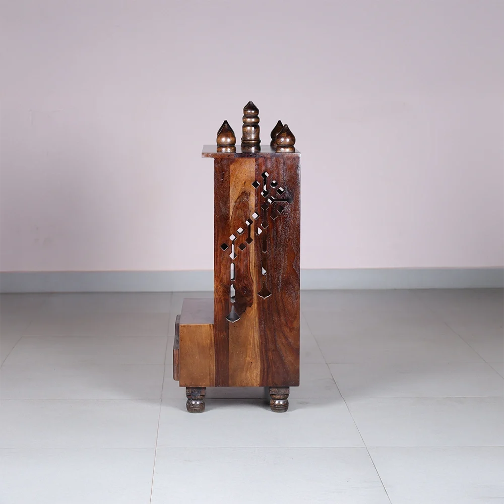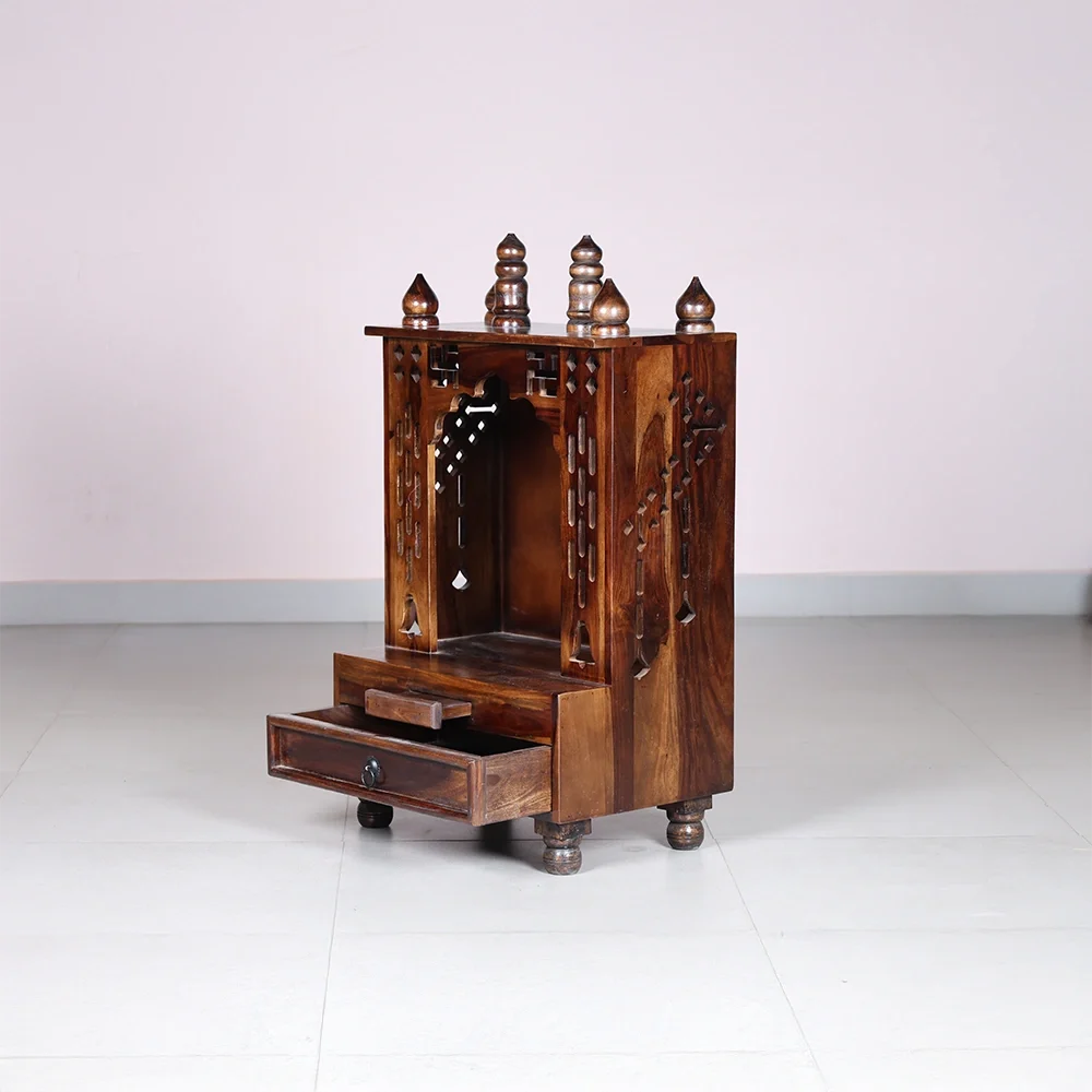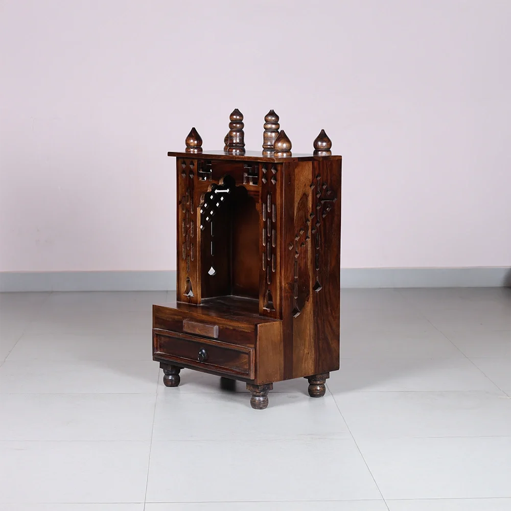 • Structure: Spacious open sanctum for idols, a pull-out storage drawer for pooja accessories, and elevated base for stability