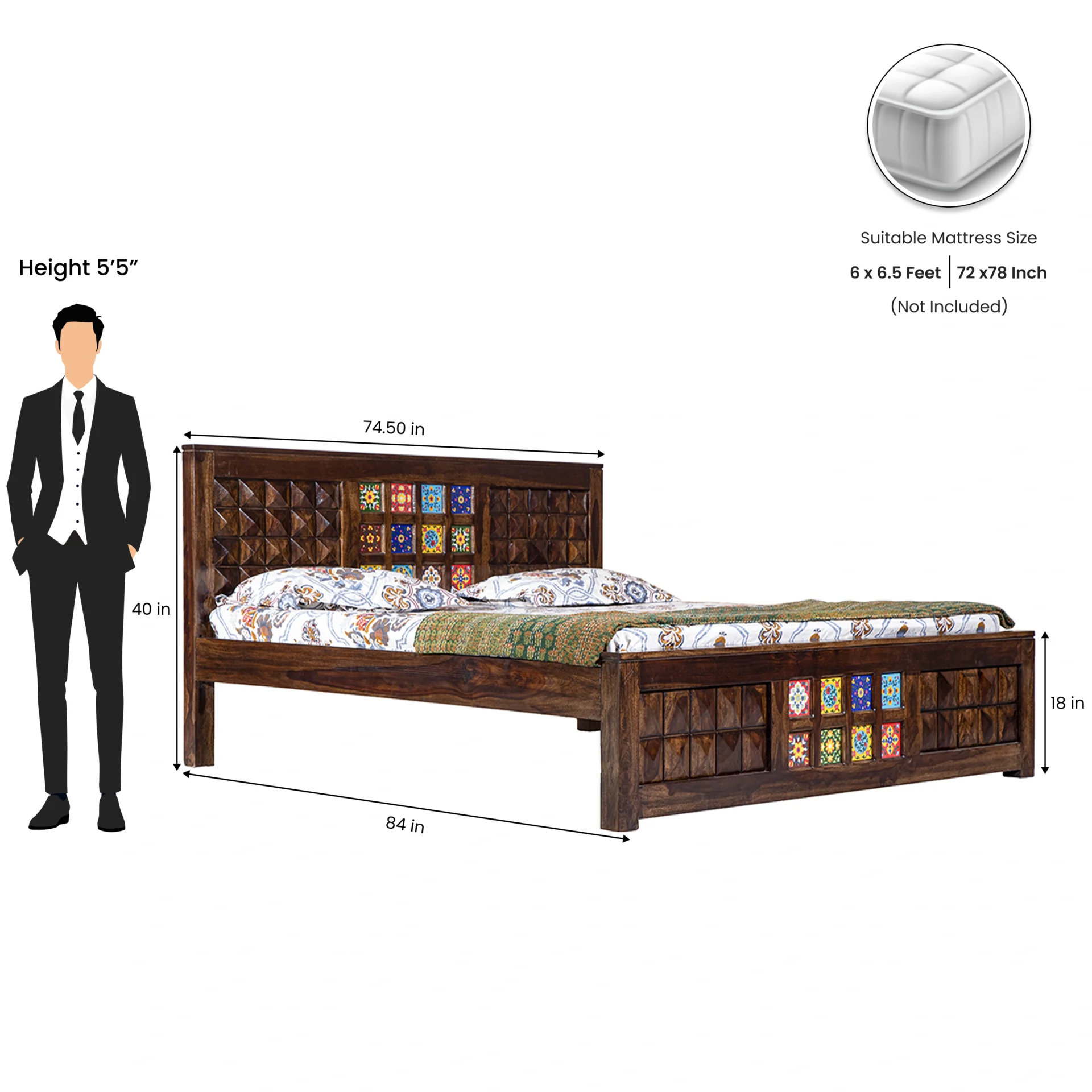Tile Diamond Cot: Elegance Redefined in Sheesham Wood