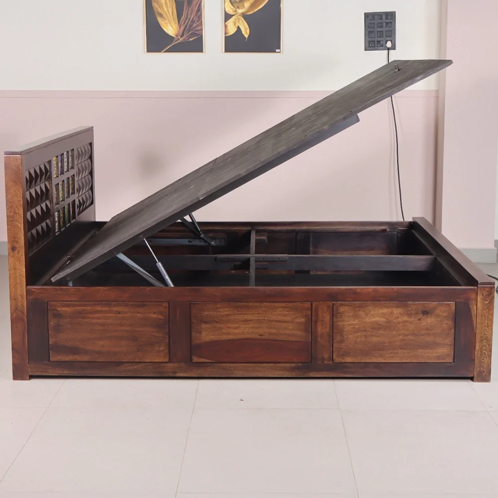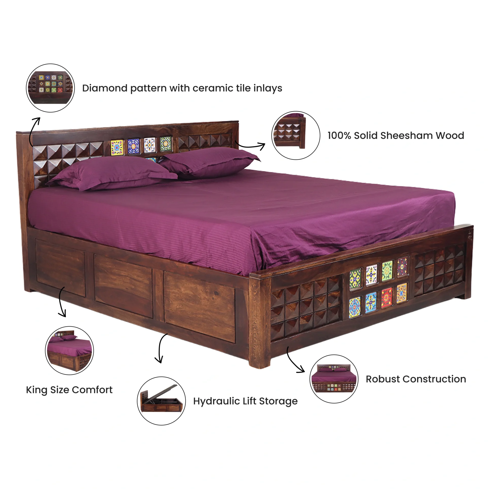 Bring home a perfect blend of functionality, elegance, and traditional craftsmanship with the Tile Diamond Hydraulic Cot King. Handcrafted from premium quality Sheesham wood, this king-size hydraulic storage bed is designed to offer both comfort and convenience while enhancing the aesthetic appeal of your bedroom.