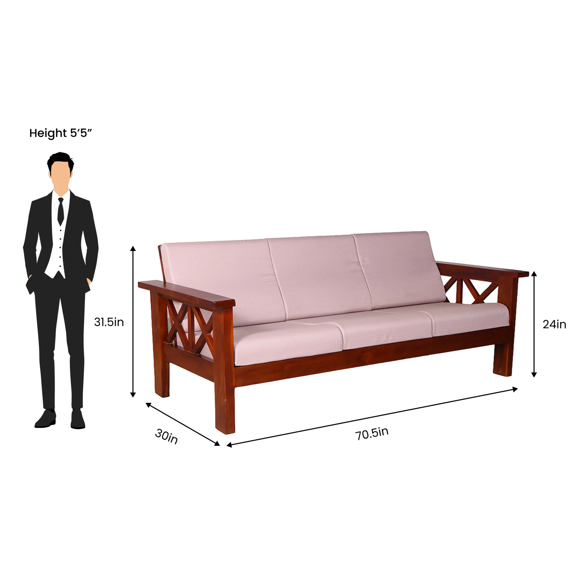 Tisa Double X Wooden Sofa 3+1+1 Seater