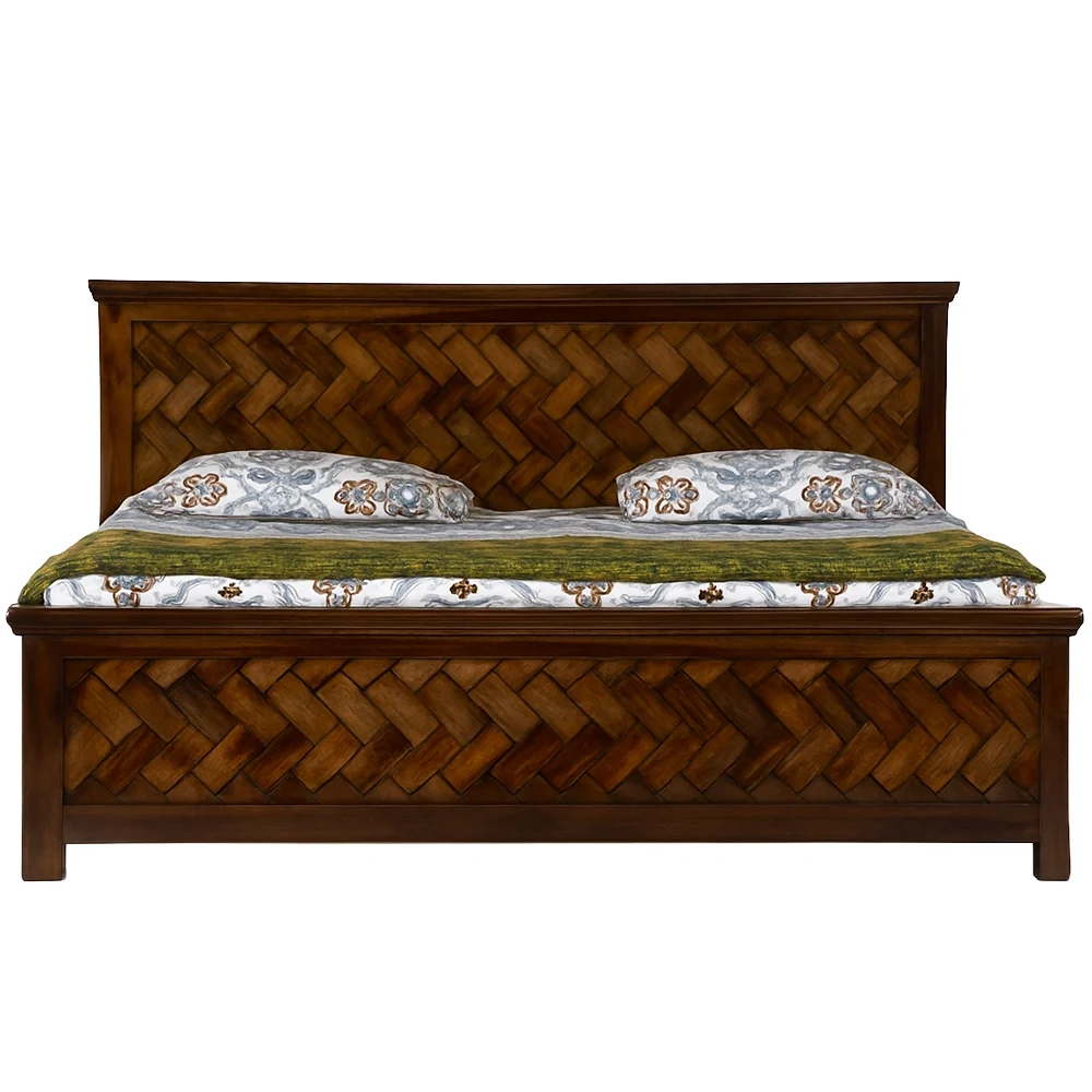 Bring bold character and craftsmanship into your bedroom with the Zigzag Bed — a King size statement piece meticulously handcrafted from solid Sheesham wood. Designed with a distinctive zigzag pattern made from individually placed Sheesham blocks on both the headboard and footboard, this bed effortlessly blends artistry with durability.