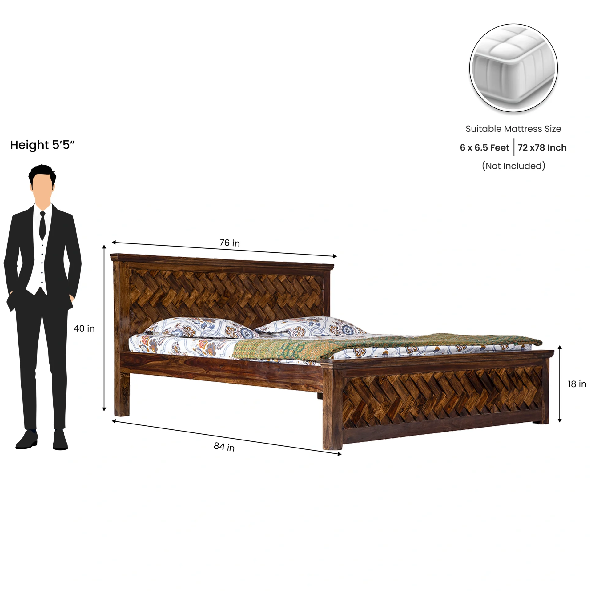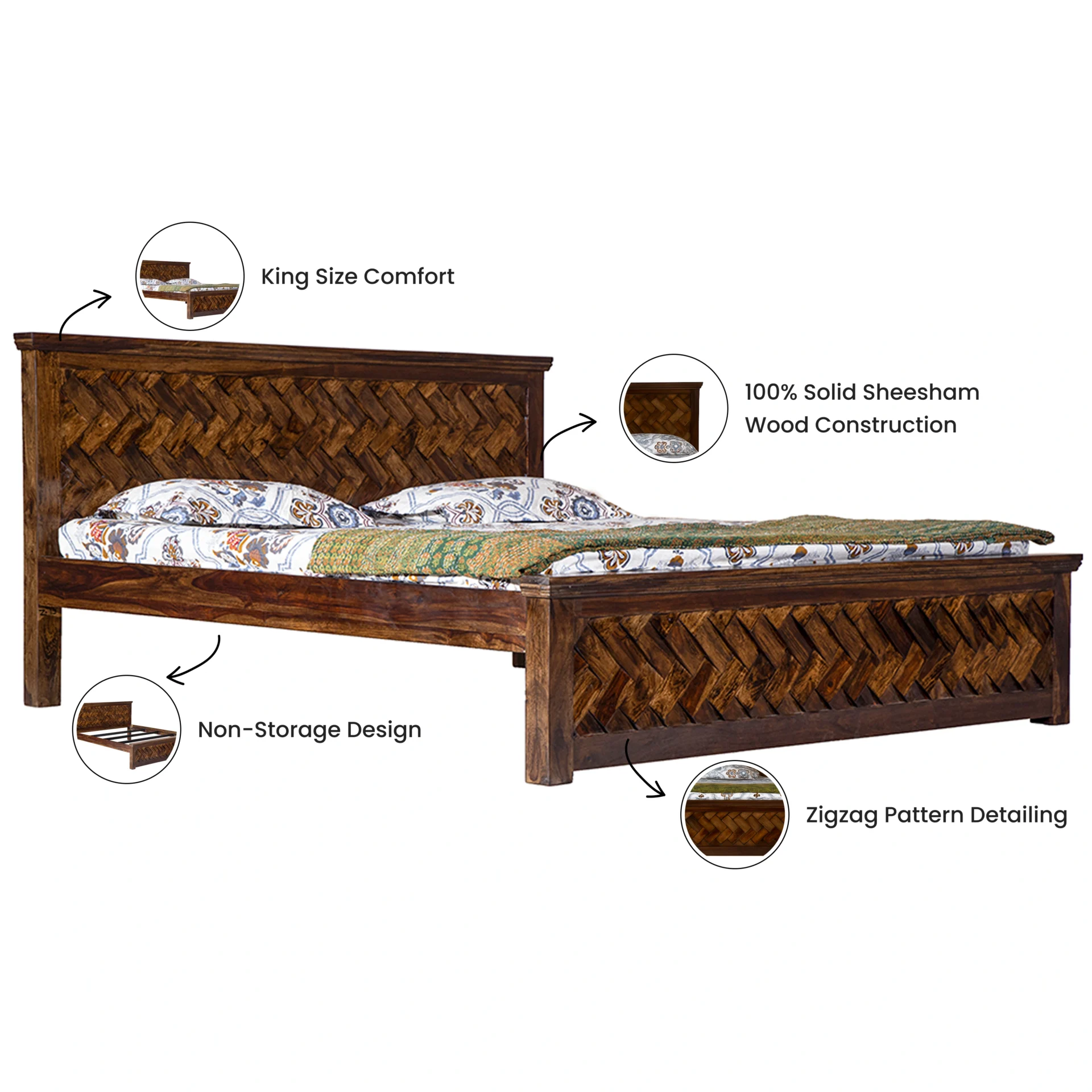 Zigzag Bed: Striking King Size Elegance in Sheesham Wood